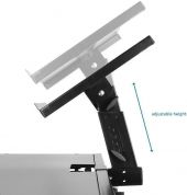 Denne mobile DJ-standen er ideell for mikser, platespillere, kontrollere, bærbare datamaskiner eller annet DJ-utstyr. Den mobile DJ-standen er enkel å sette opp og bygget av sterkt materiale. Den mobile DJ-standen har en fin svart finish og er fullt justerbar i høyden. Den justerbare platen er ideell for bærbare datamaskiner og annet lite utstyr.