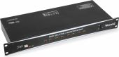 The DMX splitter booster is a 19” single rack space, 8-way DMX distributor/booster with 3-pin XLR input and output jacks. This unit takes the incoming DMX signal and splits it to eight (8) separate outputs. This greatly decreases problems with ground loops and efficiently buffers and magnifies the DMX signal, making it more accurate and reliable. All outputs include 3-pin XLR sockets, which are electronically isolated from each other to ensure uninterrupted data. In addition, each output has dedicated drivers to boost the incoming signal. - DMX-512 control