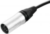 | Pin configuration: | Pin 1 (GND) / Pin 2 (+) / Pin 3 (-) / Pin 4 (NC) / Pin 5 (NC) | | Cable construction: | 5 x 0.34 mm² DMX cable | | Cable length: | 5 m | | Plug A: | 1 x 5-pin XLR (M) | | Plug B: | 1 x 5-pin XLR (F) | | Use of brands: | Built with NEUTRIK connector | | Color: | Black | | Weight: | 0.31 kg |   |  |  |  | |