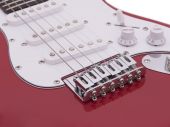 | Pickup: | 3 x single coil | | Version: | Right hand version | | Neck: | Bolt-on neck made of maple, Fingerboard: Blackwood 21 frets | | Body: | 1/2 ST-form Limewood | | Pickguard: | White | | Scale length: | 575 mm | | Number of strings: | 6 | | Regulator: | 1 x volume, 2 x sound | | PU switch: | 1 x 5-way switch | | Bridge: | ST-style | | Hardware: | Chromium-plated | | Color: | Red, high-gloss | | Weight: | 2,55 kg | | Body | | | Material: | Limewood |   |  |  |  | |
