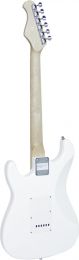 Pickup: | 1 x humbucker 2 x single coil | Version: | Right hand version | Neck: | Bolt-on neck made of maple, Fingerboard: rosewood 22 frets | Body: | 4/4 STform Ash painted | Pickguard: | White | Scale length: | 648 mm | Number of strings: | 6 | Regulator: | 1 x volume, 2 x sound | PU switch: | 1 x 5-way switch | Bridge: | ST-style tremolo | Hardware: | Chromium-plated | Color: | White, high-gloss, painted | Weight: | 3,15 kg | |  |  |