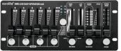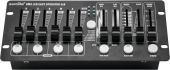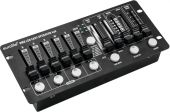 | Power supply: | 100-240 V AC, 50/60 Hz 9V DC 800 mA | | Power consumption: | 10 W | | IP classification: | IP20 | | Power connection: | Mains input via coaxial power connector (M) mounting version power supply cord with AC adapter (provided) | | Programs: | Preprogrammed 8 scenes/chases | | DMX channels: | Output 28 | | Control: | DMX; sound to light via microphone; stand-alone | | Housing color: | Black | | Color: | Black | | Housing design: | Desktop console housing | | Dimensions: | Width: 25 cm Depth: 11.5 cm Height: 5.5 cm | | Weight: | 1.04 kg | | Noise classification: | Class 0 (no noise at all) |     |  |  |  | |