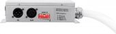 | Power supply: | 5V DC | | Power consumption: | 12 W | | IP classification: | IP20 | | Power connection: | Mains input via coaxial power connector (M) mounting version power supply cord with AC adapter (provided) | | LED type: | 1 x 9 W high-power 3in1 TCL RGB | | DMX channels: | 4 | | DMX input: | 1 x 3-pin XLR (M) mounting version | | DMX output: | 1 x 3-pin XLR (F) mounting version | | Cooling: | Cooling fan | | Control: | Stand-alone; DMX; sound to light via microphone | | Preprogrammed in: | LED PC-Control 512 | | Fibre optic strand length: | 450 pc/pcs | | Housing color: | Silvergrey | | Diameter mounting holes: | 4 x Ø4mm | | Material: | Metal, 1 mm | | Weight: | 1.09 kg | | Noise classification: | Class 0 (no noise at all); class 2 (slight noise) | | Photobiological safety: | Risk Group 0 | | Device | | | Dimensions: | Width: 19.5 cm Depth: 8.5 cm Height: 5 cm | | External mains adapter | | | Power supply: | 100-240 V AC, 50/60 Hz | | Pin configuration: | Inside + / outside - | | Cable length: | Approx. 1.5 m | | Output: | 5 V DC; 2.5 A; | | Color: | Black | | Fibre optic strand length | | | Dimensions: | Length: 200 cm Diameter: Ø 0.075 cm | | XLR cable | | | Cable length: | Approx. 1.2 m | | Connector type: | 3-pin XLR (F); 3-pin XLR (M) | | Legal specifications | | | Special product: | Not designed for household room illumination | | Intended use: | Show effect lighting |