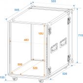 Maximum load: | 100 kg | Aluminum profile frames: | 30 mm | Case handle: | 4 pc/pcs | Lock: | Butterfly lock: 8 pc/pcs | Transport aid: | 4 x castors with 2 locking brakes | Material: | Birch multiplex, 9 mm; plywood multi-layer glued | Color: | Black, laminated; dark brown, laminated | Front panel width: | (19") approx. 48 cm | Mounting height: | Approx. 67 cm (15 U) | Mounting depth: | 450 mm | Housing design: | 15 U | Dimensions: | Width: 55,5 cm Depth: 63 cm Height: 86 cm | Weight: | 27,85 kg |   |