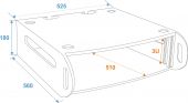 | Maximum load: | 25 kg | | Transport aid: | Rubber feet | | Material: | Plywood multi-layer glued, 9 mm | | Color: | Black, textured coating | | Front panel width: | 19" | | Mounting height: | Approx. 13.5 cm (3 U) | | Mounting depth: | 500 mm | | Housing design: | 3 U | | Dimensions: | Width: 53 cm Depth: 56 cm Height: 18 cm | | Weight: | 6.00 kg |     |