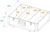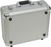 | Maximum load: | 10 kg | | Removable covers: | 1 pc/pcs | | Aluminum profile frames: | 40 mm | | Carrying handle: | 1 pc/pcs | | Lock: | Spring lock: 2 pc/pcs with shut-off function | | Transport aid: | Rubber feet | | Material: | , 4 mm | | Color: | Alu colored, laminated | | Outer compartment: | 12.5 cm x 32 cm x 9.5 cm 13.5 cm x 32 cm x 9.5 cm | | Middle compartment: | 13 cm x 32 cm x 9.5 cm | | Inside dimensions: | 39 cm x 32 cm x 9.5 cm | | Dimensions: | Width: 42.5 cm Depth: 38 cm Height: 17.5 cm | | Weight: | 3.00 kg |