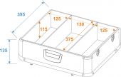| Maximum load: | 10 kg | | Removable covers: | 1 pc/pcs | | Aluminum profile frames: | 14 mm | | Carrying handle: | 1 pc/pcs | | Lock: | Spring lock: 4 pc/pcs with shut-off function | | Transport aid: | Plastic feet | | Material: | Plywood multi-layer glued, 3 mm; aluminum | | Color: | Alu colored, laminated | | Outer compartment: | 12.5 cm x 37.5 cm x 11.5 cm | | Middle compartment: | 13 cm x 37.5 cm x 11.5 cm | | Inside dimensions: | 38 cm x 37.5 cm x 11.5 cm | | Dimensions: | Width: 45.5 cm Depth: 44 cm Height: 17 cm | | Weight: | 3.15 kg |   |