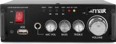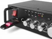 | Med AV340 2x 50W pent designet mini-forsterker vil du ta husfesten din til et nytt nivå og det vil gjøre festen din om til en karaoke-festival. Den har en MP3-spiller med LED-indikasjon, USB-port, bass/treble-kontroll og en mikrofoninngang. Perfekt også for bruksområder som HiFi og bakgrunnsmusikk. Forsterker med 2x 50W digital forsterkerMP3-spiller med USB-portBT-mottaker for lydstrømmingMikrofoninngang 6,3 mm JackStereo Line Inngang (RCA)Strømforsyning 220V AC og 12V DCDiskant/Bass/Volumkontroll