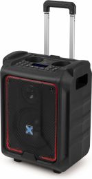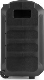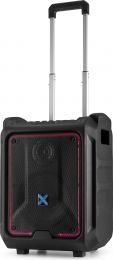 The SPLASH300 is a weatherproof all-in-one sound system specially designed for parties, performances and PA purposes. Portable and wireless, you can take this trolley sound system anywhere and play music from its input options such as USB or an external device via AUX. BT 5.0 wireless music streaming allows you to connect and stream audio from all of your favourite devices like smartphones, tablets, laptops, etc. Thanks to the built-in rechargeable battery, retractable handle and sturdy wheels, this sound system is ideal for any outdoor or indoor activities. For example home entertainment, karaoke, schools, seminars, fitness or many other applications. Take your party or event to the next level with this SPLASH300 portable sound system thanks to its bass boost system and colour changing LED ring on the front.