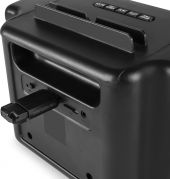 The Sputnik wireless party speaker is a compact and portable BT speaker that allow you to play your favourite tunes almost anywhere. Unlike traditional BT streaming speakers, the Sputnik party speaker features a secondary player that lets you play from a microSD card or USB port, for when you don't want to use BT. The speaker features spectacular LED lights and the built-in rechargeable battery delivers up to 4 hours of non-stop music for you and your friends to enjoy. The Sputnik is the perfect portable speaker for the park, on the beach, while you study, or even at your office. Powerful and easy to setup!