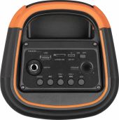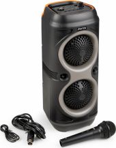 Dance, sing, and let the music carry you away! Take your party to the next level with the Track210 Wireless Party Speaker featuring spectacular beat-synchronized LED party lighting in the front. Thanks to the built-in rechargeable battery, supplied microphone and numerous input options; USB, micro SD card, BT streaming and a built-in microphone jack connection, you can easily sing along to all your favorite songs. It’s also possible to wirelessly connect two Track210 speakers to create an even more powerful stereo sound. Ideal for home entertainment, karaoke, schools, parties or many other applications. - Party Speaker with USB/microSD Media player