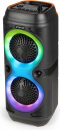 | Product colour | Black | | Playback options | BT streaming, USB, MicroSD, FM radio, Microphone (input) | | Input connections | 6.3mm Jack, MicroSD, USB | | Output power: Max | 100W | | Diameter woofer | 2x 4" | | Magnet type | Ferrite | | Battery | 3.7V - 2.4Ah | | Power supply | 5V via USB | | Dimensions (L x W x H) | 165 x 155 x 405mm | | Weight (kg) | 1,64 | | Included accessories | Handheld microphone (wired), USB cable | pdf