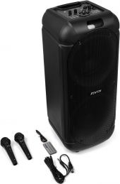 Product colour | Black | Playback options | BT streaming, USB, MicroSD, Line input, Microphone (input) | Input connections | 3.5mm Jack, 6.3mm Jack, MicroSD, USB | Output power: Max | 160W | Tweeter type | Piezo | Diameter tweeter | 1" | Diameter woofer | 2x 8" | Magnet type | Ferrite | Battery | 7.4V - 3.6Ah | Power supply | 100-240VAC 50/60Hz (5V USB) | Dimensions (L x W x H) | 295 x 280 x 690mm | Weight (kg) | 6,40 | Included accessories | Handheld microphone (wired), Remote control (wireless), Power adapter | pdf