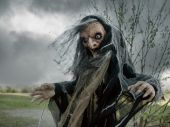 Halloween Dekoration, Animeret Figur med Lys- og Lydeffekter, Heksen Nahema, 160cm