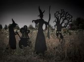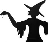 |  | Heks-silhuet som blikfang i haven Hexensilhouette als Blickfang im Garten - Krog i hånden kan bruges til at hænge andre dekorationselementer