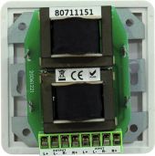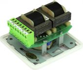 | Power: | Rated: 5W RMS | | Frequency range: | 50 - 18000 Hz | | Impedance: | 4 ohms | | Input & output: | Stereo | | Housing design: | Flush mounting Finery housing (optional) | | Dimensions: | Width: 8 cm Depth: 8.2 cm Height: 8 cm | | Weight: | 0.28 kg |   |