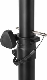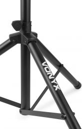 Høyttalerstativ i sort aluminium, med låsbart høyde reguleringssystem.