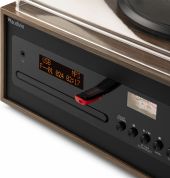 The Boston Record Player Set, with its retro style, is a music centre that isn’t just beautiful to look at; it also sits right at the heart of your music collection. Listen to all your 7-inch, 10-inch, and 12-inch vinyl records in optimal quality through the two included HIFI speakers. The vintage-style front is characterized by the large volume knob and two traditional VU meters. The Boston music centre also features an MP3-capable CD player, a USB port, and all the modern technology you expect, including a DAB+ radio and an integrated BT media player for wireless music streaming.