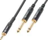 |  | PD Connex profesjonell HQ 6 meter 3,5 Jack (stereo) - 2x 6,3 Jack (mono) OFC signalkabel. Denne ekstremt fleksible signalkabelen er utstyrt med høykvalitets metall Jack-kontakter og garanterer en problemfri og pålitelig signalloverføring. Leveres med kabelbånd. - Profesjonell fleksibel kabel