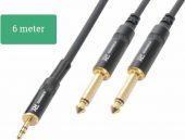 OBS: Vi har kun 6 stk. af denne vare. PD Connex professional HQ 3,5 Jack (stereo) - 2x 6,3 Jack (mono) OFC signal cable. This extremely flexible signal cable is fitted with high quality metal Jack connectors and guarantees a trouble-free and reliable signal transmission. Supplied including cable tie. - Professional flexible cable