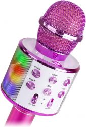 KM15P Karaoke-mikrofon med høyttaler og LED-lys BT/MP3 LED Rosa