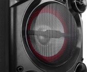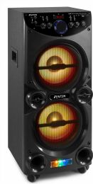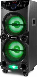 Hvis du ønsker robust holdbarhet og uendelig tilkobling, vil denne LIVE2104 Karaoke Station fra Fenton få festen i gang. Med flere inngangsalternativer; USB- og micro SD-korttilkoblinger, en multimediaspiller med opptaksfunksjon og forskjellige LED-lys, er dette en høyttaler som ser flott ut og låter enda bedre! LIVE2104 Karaoke Station, som er kjent for avansert trådløs BT-teknologi, vil gi deg høykvalitets musikk og garanterer et krystallklart signal selv når du er langt unna enheten. Å koble til telefonen din, nettbrettet eller andre BT-aktiverte enheter er superenkelt! Så hvis du er ute etter høy effekt, stor lyd og et spektakulært lysshow; LIVE2104 er feststarteren! Inkludert 2 trådløse mikrofoner.