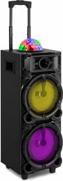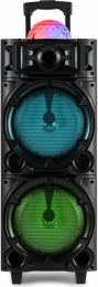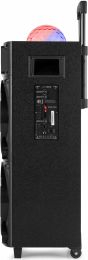 Product colour | Black | Playback options | BT streaming, USB, MicroSD, Line input, Microphone (input) | Input connections | 3.5mm Jack, 6.3mm Jack, MicroSD, USB | Output power: Max | 300W | Tweeter type | Piezo | Diameter tweeter | 1" | Diameter woofer | 2x 8" | Voice coil | 1" | Magnet type | Ferrite | Frequency response | 50Hz - 18.000Hz | Impedance | 4 Ohm | Battery | 3.7V - 3.6Ah | Power supply | 100-240VAC 50/60Hz | Dimensions (L x W x H) | 300 x 310 x 840mm | Weight (kg) | 8,80 | Included accessories | Handheld microphone (wired), Remote control (wireless), Power cable | pdf