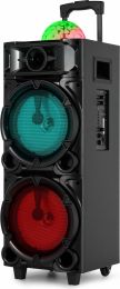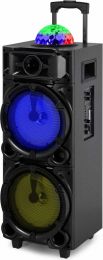 |  | What's a party without light and sound? Take your favourite music anywhere with this Fenton LIVE290 Party speaker equipped with built-in multimedia player. Use smartphone, tablet or other suitable device to connect to the speaker via BT or play music directly via the Aux input, USB or microSD card. The two microphone inputs make doing karaoke really easy and fun, just plug in and go! Light up any party or event with the colourful flashing LED lights on the front and the space-filling disco-ball on top. - Karaoke speaker with spectacular light show
