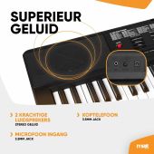 Set consisting of: 1 x KB15 Electronic Keyboard 61-keys with Battery 1 x Dynamisk sang mikrofon til børn, sort 1 x Letvægt Stereo Hovedtelefon LST-831, med ekstra langt kabel, kabellængde 2.5m 1 x Standard Keyboardstativ KS-STD, sort 1 x Keyboard Bench with adjustable height / black