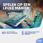 Set bestående av: 1 x KB15 Electronic Keyboard 61-keys with Battery 1 x Dynamisk sang mikrofon til børn, sort 1 x Letvægt Stereo Hovedtelefon LST-831, med ekstra langt kabel, kabellængde 2.5m 1 x Standard Keyboardstativ KS-STD, sort 1 x Keyboardbænk m. justerbar højde / sort