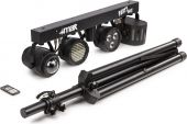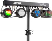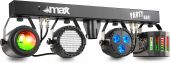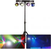 The MAX PartyBar Series consists of a number of complete kits fitted with spectacular LED light effects. All sets are provided with high-intensity LEDs in different colours. This series of Party Bars is plug and play and can be controlled via DMX, IR remote control or auto and sound-activated programs selectable from the control panel with LED display and push buttons. A tripod stand is included for quick and easy setup. Specially designed for stages, parties, entertainers and all other special events.