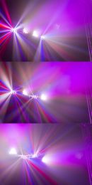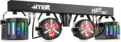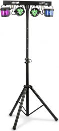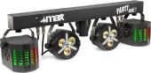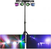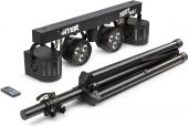 The MAX PartyBar Series consists of a number of complete kits fitted with spectacular LED light effects. All sets are provided with high-intensity LEDs in different colours. This series of Party Bars is plug and play and can be controlled via DMX, IR remote control or auto and sound-activated programs selectable from the control panel with LED display and push buttons. A tripod stand is included for quick and easy setup. Specially designed for stages, parties, entertainers and all other special events.