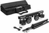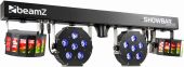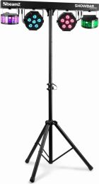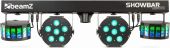 |  | SB02 ShowBar settet er en oppladbar litiumbatteridrevet Show Bar som inneholder 4 effekter montert på en DMX T-bar. Den er utstyrt med 2 LED Derby effektlys og et par kraftige LED-par som garanterer en fantastisk lysoppvisning. T-baren kan styres i automatisk modus, lydaktivert modus eller 6/30-kanals DMX-modus, og den er også utstyrt med en IR-sensor for fjernkontrollstyring på avstand. SB02 ShowBar kan monteres på den inkluderte stativet, og batterikapasiteten kan enkelt leses av på batteriindikatoren. - Innebygd batteri: 11,1V 8,8Ah