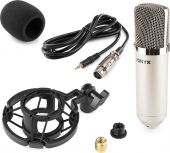 En høj kvalitets kondensatormikrofon med stor membran og bred frekvensrespons. Den er designet til at kunne bruges til en bred vifte af vokal- og instrumentanvendelser. Kondensatormikrofonen er udført i et attraktivt sølv/chrome-kabinet. Med lav forvrængning leverer mikrofonen en fantastisk tonekvalitet og imponerende lydgengivelse. Perfekt til både studie- og livebrug, og giver fremragende resultater ved optagelse af vokal og akustiske instrumenter.