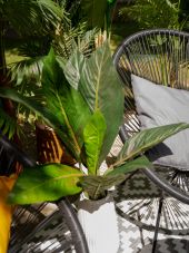 | Standing/fixation: | Without | | Color: | Green | | Foliage: | Approx. 16 leaves Material: textile | | Decor style: | Tropics; houseplant | | Dimensions: | Length: 45 cm | | Weight: | 0.44 kg |