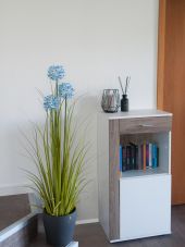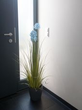 | Setup: | Leaves shapeable | | Standing/fixation: | Gardening pot with decorative stones | | Material: | Plastic | | Color: | Blue | | Foliage: | Material: plastic | | Flowers: | Pieces: approx. 3 pc/pcs Color: blue P(material: )textile | | Decor style: | Houseplant | | Season: | Spring | | Dimensions: | Height: 120 cm | | Weight: | 1.55 kg | | Planter | | | Dimensions: | Diameter: Ø 14 cm |