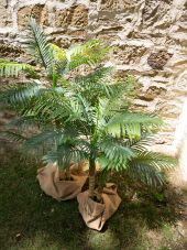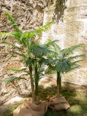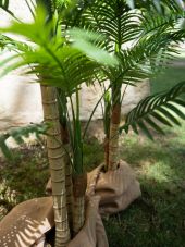 | Trunk: | 3 x artificial trunk | | Setup: | Shapeable | | Standing/fixation: | Gardening pot covered with artificial earth | | Color: | Green | | Foliage: | 27 fronts Material: plastic | | Decor style: | Tropics; mediterranean flair | | Season: | Spring; summer | | Dimensions: | Length: 24 cm Width: 24 cm Height: 150 cm | | Weight: | 4.70 kg | | Planter | | | Dimensions: | Height: 15 cm Diameter: Ø 17 cm |