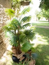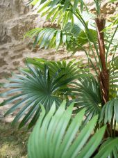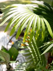 Fan palm with large plastic fronds