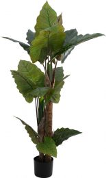 | Trunk: | 2 x artificial trunk | | Setup: | Leaves easy to assemble | | Standing/fixation: | Gardening pot covered with artificial earth | | Color: | Dark green | | Foliage: | Approx. 15 leaves Material: plastic | | Transport dimensions: | 19 cm x 19 cm x 118 cm | | Decor style: | Tropics; houseplant; modern living | | Season: | Summer; spring; summer | | Dimensions: | Length: 90 cm Width: 90 cm Height: 140 cm | | Weight: | 3.95 kg | | Planter | | | Dimensions: | Height: 14 cm Diameter: Ø 17.5 cm |     |