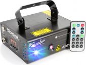 The Anthe II Double laser has 12 gobo patterns. The laser can project a lot of beams with gobo on any wall, ceiling or dance floor. The Red, Green and Blue laser includes an IR remote control for wireless control and to switch between sound-activated or auto programs. In DMX mode you also have total control of all patterns. There are safety features like a key switch and an interlock interface. The lightweight case design makes it ideal for mobile entertainers, bands, night clubs, bars, and anyone looking to lighten up a party.