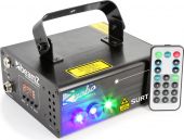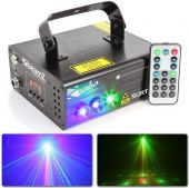 The Surtur II Double Red, Green and Blue LED creates a psychedelic atmospheric effect from unique red and green laser patterns and a blue LED wash, all built into one case. You can choose 8 different gobo lighting for a amazing effect. The Red and Green laser includes an IR remote control for wireless control and to switch between sound-activated or auto programs. In DMX mode you also have total control of all patterns. There are safety features like a key switch and an interlock interface. The lightweight case design makes it ideal for mobile entertainers, bands, night clubs, bars, and anyone looking to lighten up a party.