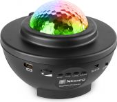 The SkyNight projector with built-in multimedia player can light up the entire room in a galaxy pattern along with red and green stars. With the rotating mechanism it also creates a water wave effect in many different colours. This magical effect allows you to enjoy both light and music at the same time, thanks to the built-in speaker. It works with smartphone, tablet (BT streaming) or just insert a USB stick.