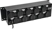 | Power supply: | 230 V AC, 50 Hz | | Power consumption: | 3680 W | | Protection class: | Protection class I | | Output power: | Max. 1150 W per channal | | Output current: | Max. 5 A per channal | | Power connection: | Fixed power supply cord with safety plug | | Power output: | 10 x safety contact (F), hinged lid mounting version fused | | Power output fuse per channel: | Circuit breaker, 6,3 A fuse resettable | | Control: | On/off switch on device | | Control channels: | 10 | | Color: | Black | | Dimensions: | Width: 48,3 cm Depth: 14 cm Height: 13,35 cm | | Weight: | 2,96 kg |     |