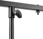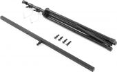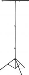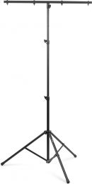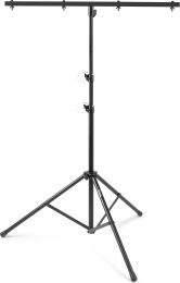 A heavy duty light stand ideal, due the low weight, for use on stage, at a drive-in, bands, etc. Equipped with a T-bar with hanging points for lighting effects, cans or other equipment. The stand is compact to fold and is fixed with swivels and metal pins ensuring a safe and stable use.