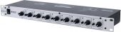Connections:Input: microphone via 8 x 3-pin XLR Input: line via 8 x 6.3 mm jack socket (mono) mounting version Input: AUX via 1 x RCA (F) mounting version Output: line via 1 x 6.3 mm jack socket (mono) mounting version Output: AUX via 1 x RCA (F) mounting version