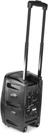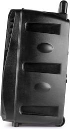 Få festen i gang med FT8LED-MK2 bærbart lydsystem. Med dette underholdningssystemet kan du spille alle dine favorittsanger og synge hjertet ditt ut med den medfølgende mikrofonen, uansett hvor du er. Høyttaleren er utstyrt med et tralle-system og har en 8" woofer som gir optimal lyd. Bruk BT trådløs tilkobling for å koble den til smarttelefonen din, bruk et MicroSD-kort/USB-stasjon eller koble til med en 3,5 mm lydkabel til enheten din når trådløs tilkobling ikke er tilgjengelig. Den innebygde fargeskiftende LED-ringen montert bak grillen legger til en fantastisk effekt til enhver fest. Dette bærbare høyttalersystemet har et innebygd batteri og er enkelt å bruke.