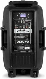 Et profesjonelt 12" 500W mobilt lydsystem med 2 UHF trådløse mikrofoner som opererer på forskjellige frekvenser, fjernkontroll og integrerte USB- og SD-spor for avspilling av MP3. Dette alt-i-ett-systemet kan drives via strømnettet eller et 12V internt oppladbart batteri, og har en 12" hovedhøyttaler og en 1" HF-høyttaler. På baksiden finnes det 2 innganger og en ekko-effekt for kablede mikrofoner, AUX linjeinngang, MP3-kontrollenhet, 5 kontroller for tonejustering osv. Takket være dette spennende systemet kan lokaler og områder fylles med en behagelig lyd.
