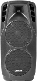 |  | Et profesjonelt dobbelt 10" 1000W bærbart lydsystem med BT-mottaker, med 2 UHF trådløse mikrofoner, fjernkontroll og integrerte USB- og SD-spor for avspilling av MP3. Dette alt-i-ett-systemet kan brukes via strømnettet eller et 12V internt oppladbart batteri. På baksiden finner du innganger for en kablet mikrofon (6,3 mm Jack og XLR), AUX linjeinngang (3,5 mm), stereo linjeinngang (RCA og XLR) og en utgang (XLR) for å koble til en annen aktiv høyttaler. På grunn av dette spennende systemet kan lokaler og områder fylles med en behagelig lyd. SPX-PA9210 er også utstyrt med en tralle med teleskopisk håndtak for enkel transport. - 2x 10 Mobil lydsystem