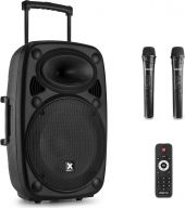 Inkluderer 2 UHF-håndholdte mikrofoner med ekko-effekt