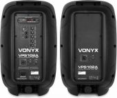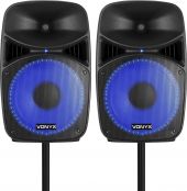 |  | VPS102A er et komplett plug & play sett, klart til å starte festen din. Settet inneholder et par 10" høyttalere, en passiv og en aktiv modell. Den aktive modellen inneholder forsterkeren som har en innebygd USB/SD-spiller og BT trådløs teknologi for å strømme musikken din trådløst fra smarttelefonen eller nettbrettet ditt. Begge høyttalerne har en blå LED-ring rundt basshøyttaleren for å farge og lyse opp festen din. For å fullføre settet følger det med en kablet mikrofon for karaoke eller presentasjonsformål. - 600W høyttalersett med stativer